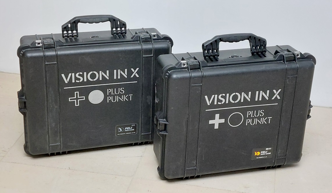 VX PlusPunkt (from german "Plus"="plus" and "Punkt"="dot") is a mobile X-ray inspection system, which is built inside two heavy-duty suitcases for safe and easy transport.   A mobile power station (included) offers the best option to work anywhere, independent from house power supply.   One great advantage of PlusPunkt is the small X-ray tube that fits in tight spaces, e.g. between pipes on a pipe bridge, where one would be forced to use isotopes.   Compared to using isotopes, PlusPunkt's simplified handling and a narrowed control area lead to a significant productivity gain.